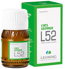 Una dosis de 20 gotas de L52 contiene los siguientes principios activos: Eupatorium perfoliatum 3DH, Aconitum napellus 4DH, Bryonia alba 3DH, Arnica montana 4DH, Gelsemium 6DH, China rubra 4 DH, Belladonna 4DH, Drosera 3DH, Polygala senega 3DH a.a. 0,044ml, Eucalyptus globulus 1DH 0,1 ml. Los excipientes son etanol 70% (V/V) y agua purificada. Por lo que es muy importante evitar la aplicación de dichos tratamientos en pacientes con tratamientos interdictores de alcohol y de forma prolongada en personas con problemas hepáticos severos.